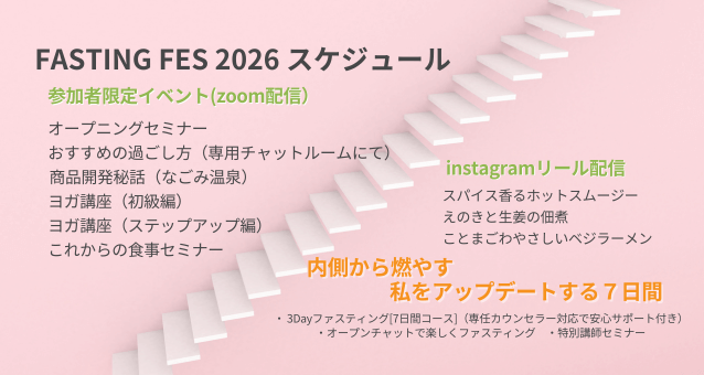 通常の7日間ファスティングのほかに、イベントが盛りだくさん!